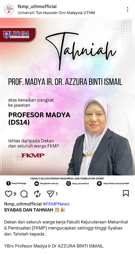 Faculty of Mechanical and Manufacturing Engineering, Universiti Tun Hussein Onn Malaysia, 86400 Parit Raja, Batu Pahat, Johor, Malaysia